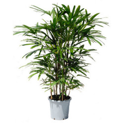 Appartenant à la famille des Arécacées, le Rhapis se caractérise par des feuilles vert foncé en forme d'éventail qui sont portées par des pétioles d'une vingtaine de cm. Quels polluants sont décomposés par cette plante ? Ammoniac Formaldéhyde Xylène